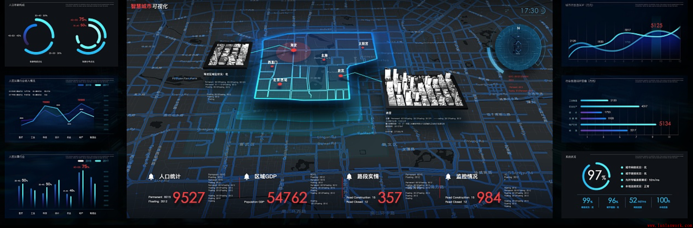 其實可視化大屏的UI設(shè)計并不只是一個簡單的設(shè)計,其核心就是要以展示數(shù)據(jù)為核心,不管在多么炫目的情況下都不會影響數(shù)據(jù)的展示。