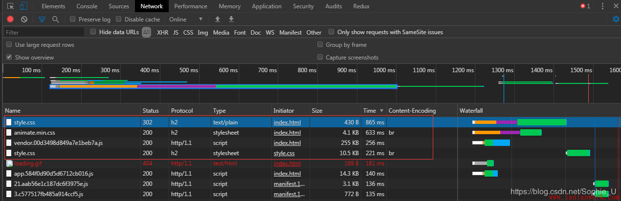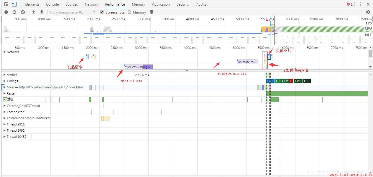 通過訪問線上環(huán)境,結(jié)合Chrome devtool中Network和Performance功能可以具體分析整個白屏的耗時主要在哪一塊兒