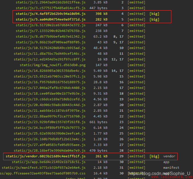 在完成了上述優(yōu)化以后,下面著重關(guān)注下webpack打包后生成的文件大小,看還有沒有可以優(yōu)化的余地。由于項(xiàng)目中已經(jīng)通過路由按需加載