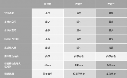 在設(shè)計(jì)表單時(shí)到底是左對(duì)齊、右對(duì)齊還是頂部對(duì)齊呢?這個(gè)問題也是在實(shí)際業(yè)務(wù)中設(shè)計(jì)師發(fā)問頻率較高的一個(gè)棘手問題。其實(shí),不論是哪種方式都有相對(duì)的利弊,需要根據(jù)實(shí)際業(yè)務(wù)場(chǎng)景提供不同的解決方案。在Matteo Penzo《Label Placement in Forms》文章中有分享過關(guān)于表單標(biāo)簽放置的研究,下圖是Matteo Penzo研究總結(jié)得到的瀏覽時(shí)間表: