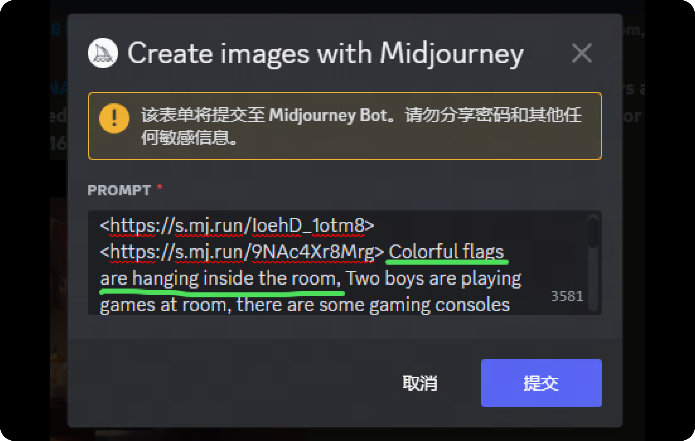 回到Midjourney,對(duì)主視覺(jué)底圖使用混音模式。