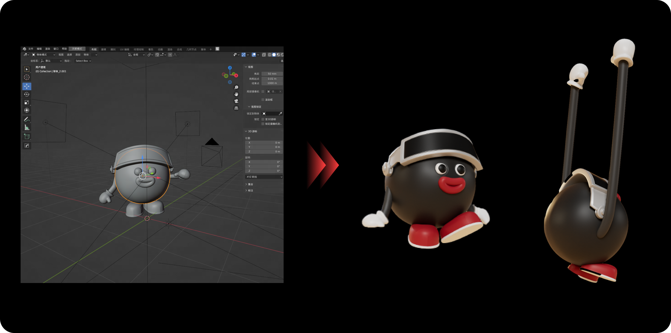 只需把圖丟上去就能迅速摳出畫(huà)面主體,非常方便。最后我們要將IP形象霸哥融入進(jìn)畫(huà)面,因?yàn)镮P形象是特定的,所以在這我們使用三維軟件去進(jìn)行IP形象動(dòng)作的調(diào)整。