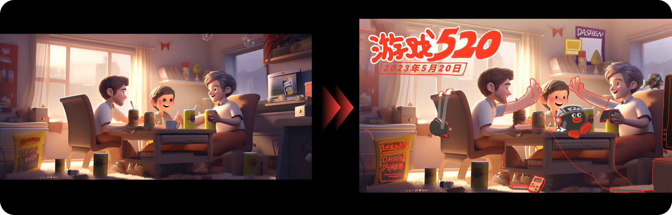 在此基礎(chǔ)上,我們進(jìn)一步優(yōu)化畫(huà)面,將畫(huà)面中一些不合理的元素運(yùn)用上述同樣的方式替換掉,并把文案擺放至畫(huà)面中看看整體的效果。如下圖所示: