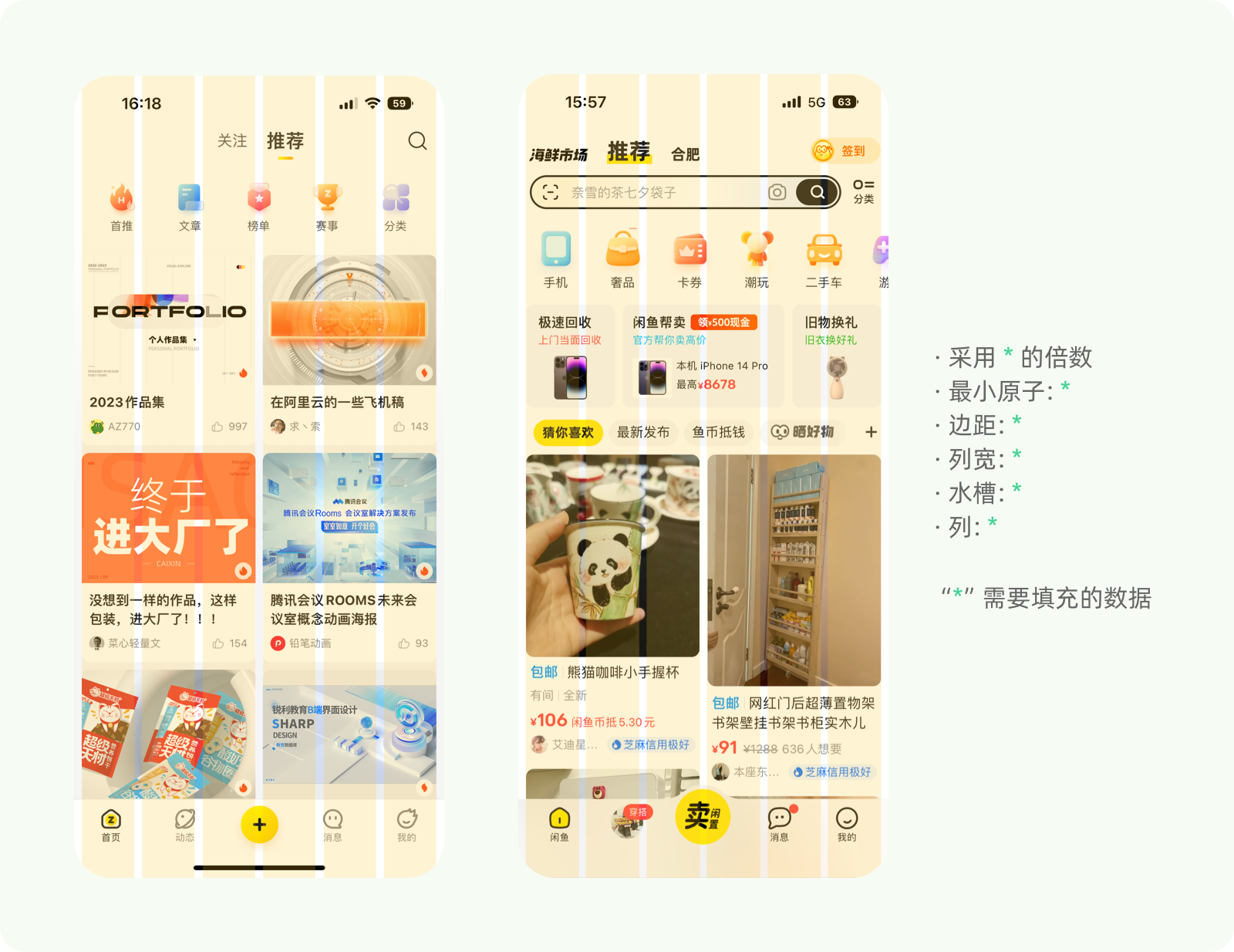 柵格的規(guī)則定義了一套底層的、統(tǒng)一的測量單位,當設計團隊內(nèi)對此達成共識時,可以避免因屏幕適配、比例換算產(chǎn)生的像素偏移,適配多種屏幕,提升設計稿件中元素屬性的一致性和規(guī)范化。