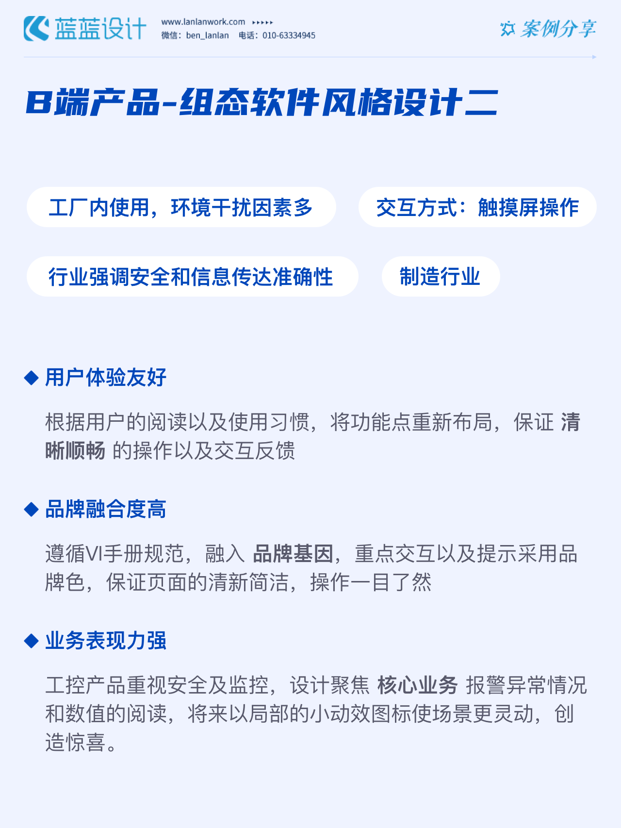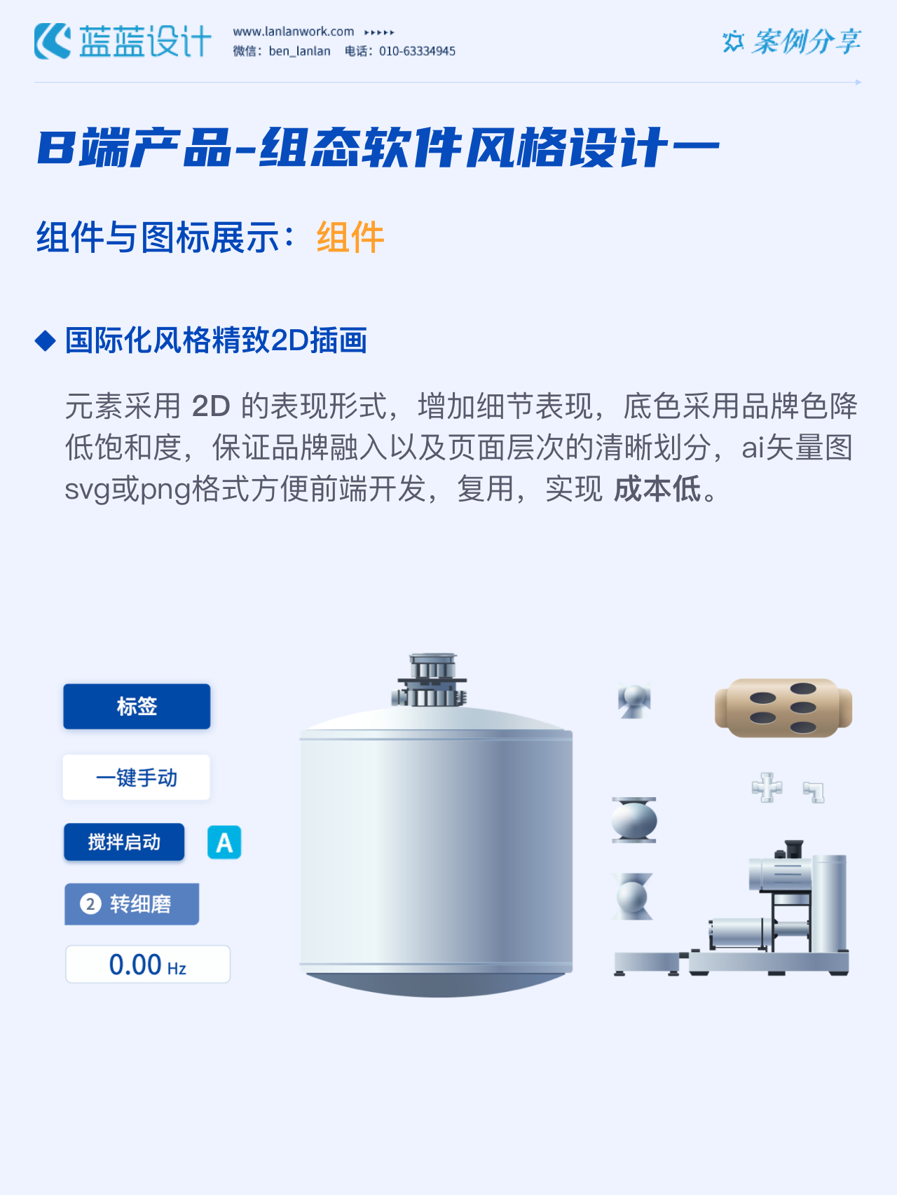 藍藍設(shè)計的兩種組態(tài)軟件風格都采用符合當下審美潮流的2D插畫效果,既保證了視覺效果美觀的同時也降低落地成本,方便后續(xù)的拓展、修改、提升與設(shè)計效率,同時注重用戶的閱讀習慣,將原功能點重新布局,主次內(nèi)容對比明顯,降低視覺噪音,保證清晰順暢的操作,提升用戶體驗!