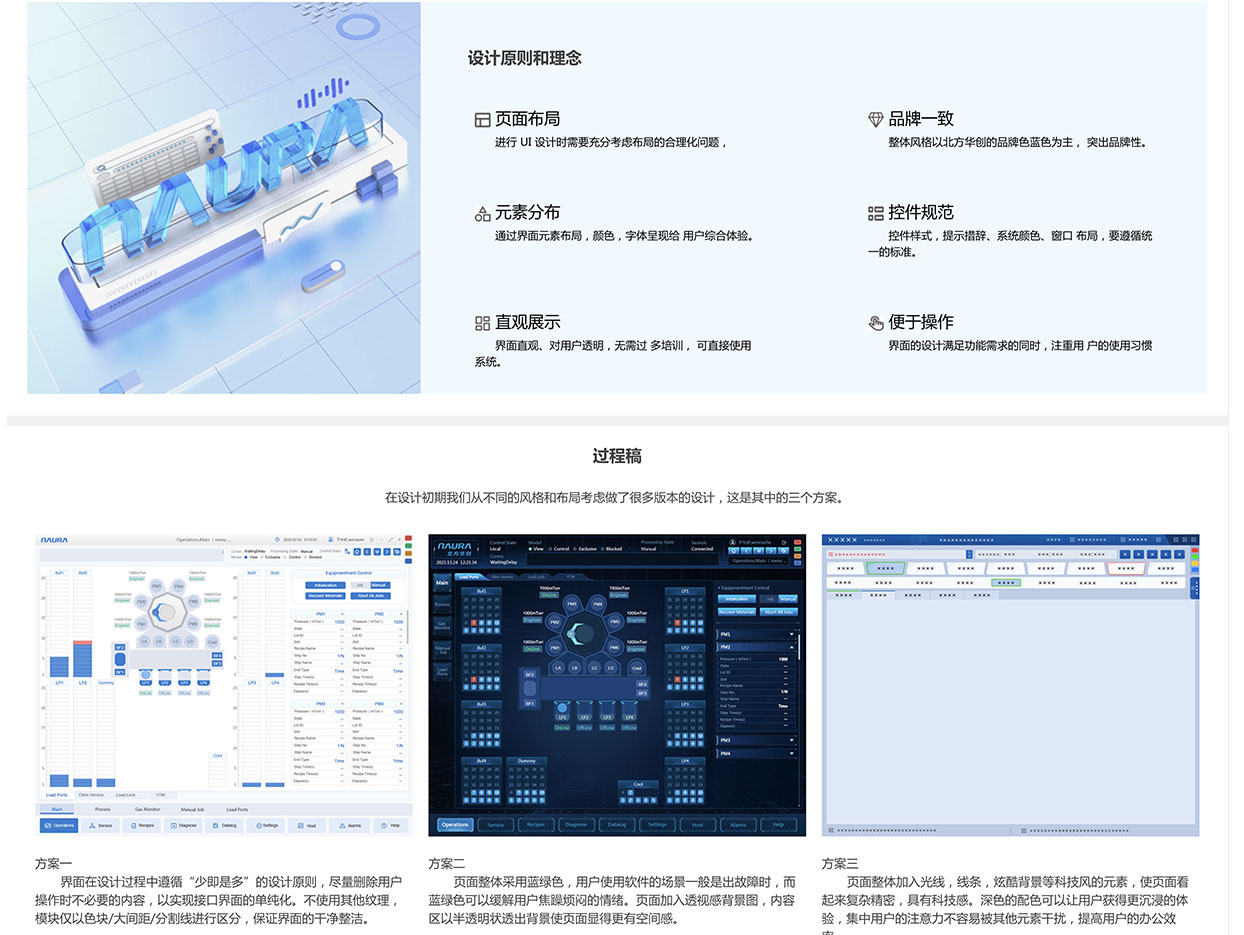 品牌一致:整體風格以北方華創(chuàng)的品牌色藍色為主, 突出品牌性。