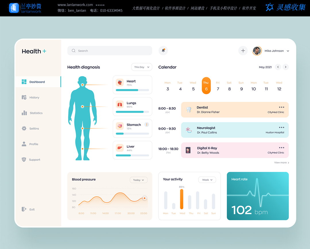 患者在就醫(yī)前往往對自身病情、醫(yī)院科室分布、醫(yī)生排班等信息感到迷茫。醫(yī)療 UI 設(shè)計可以將這些分散的信息進行整合,并在醫(yī)院官網(wǎng)、手機應(yīng)用等平臺的顯著位置前置呈現(xiàn)。例如,設(shè)計清晰的科室導(dǎo)航菜單,患者能夠快速了解醫(yī)院各個科室的診療范圍、專家介紹以及實時掛號情況。通過直觀的圖表或列表展示醫(yī)生的出診時間、擅長領(lǐng)域和患者評價,方便患者根據(jù)自身需求選擇合適的醫(yī)生。這樣一來,患者在就醫(yī)前就能夠?qū)φ麄€就醫(yī)流程有初步的規(guī)劃,減少盲目性,節(jié)省時間和精力。