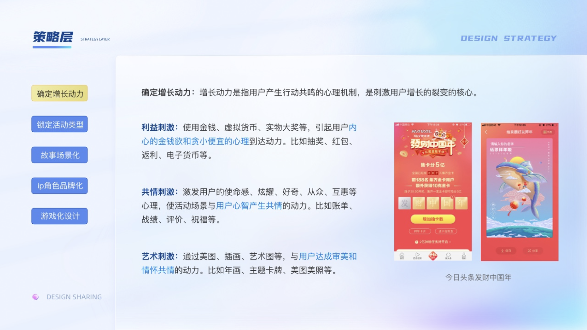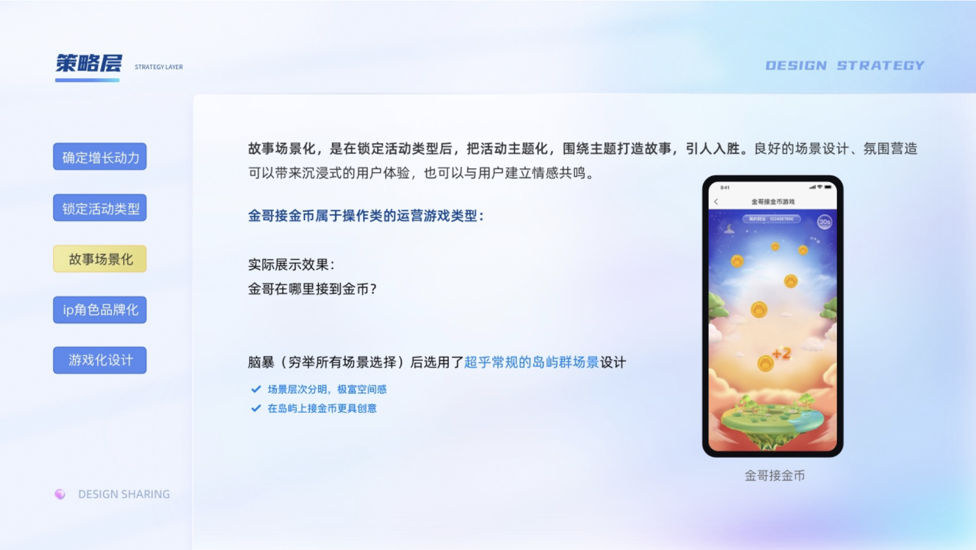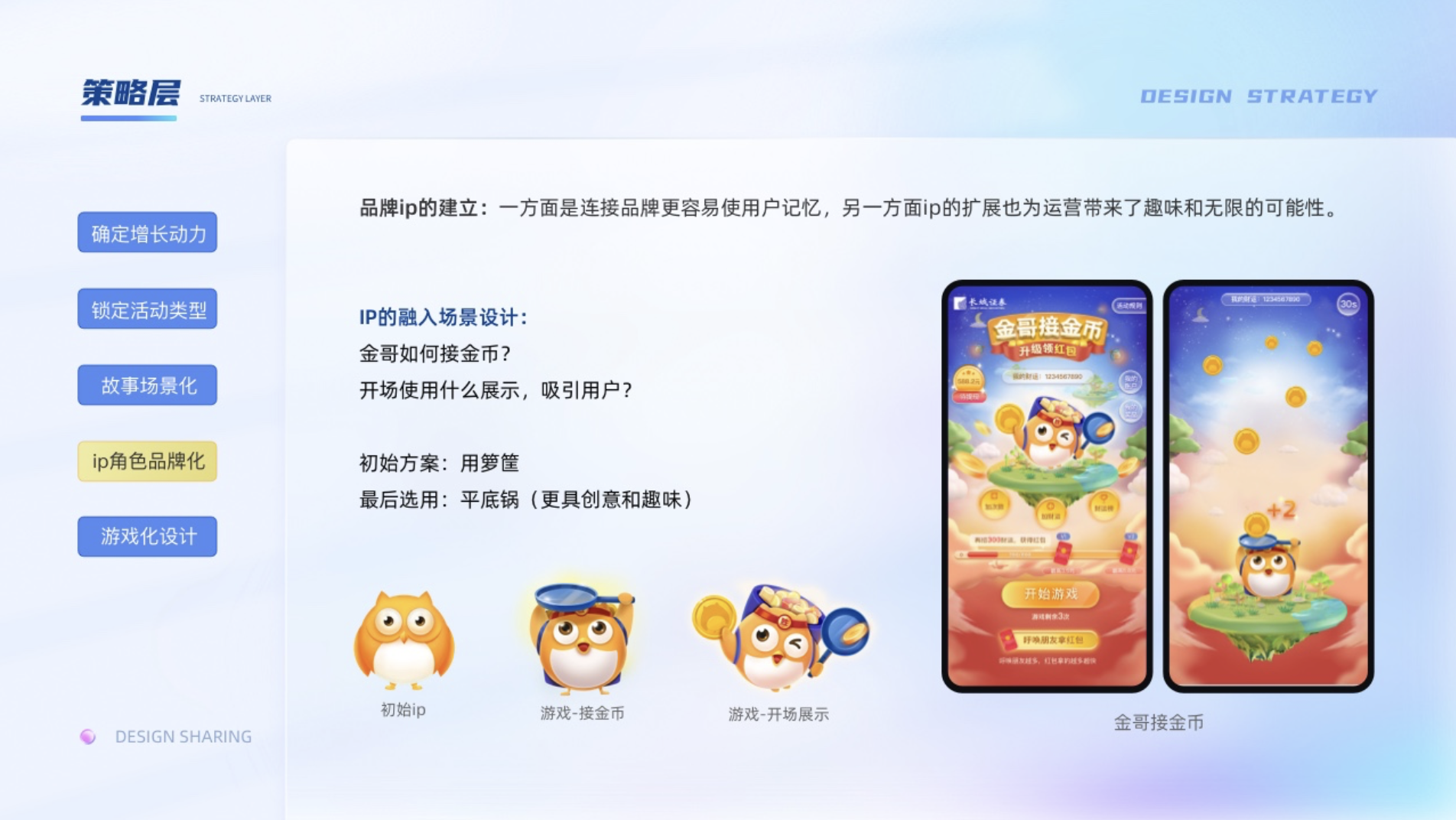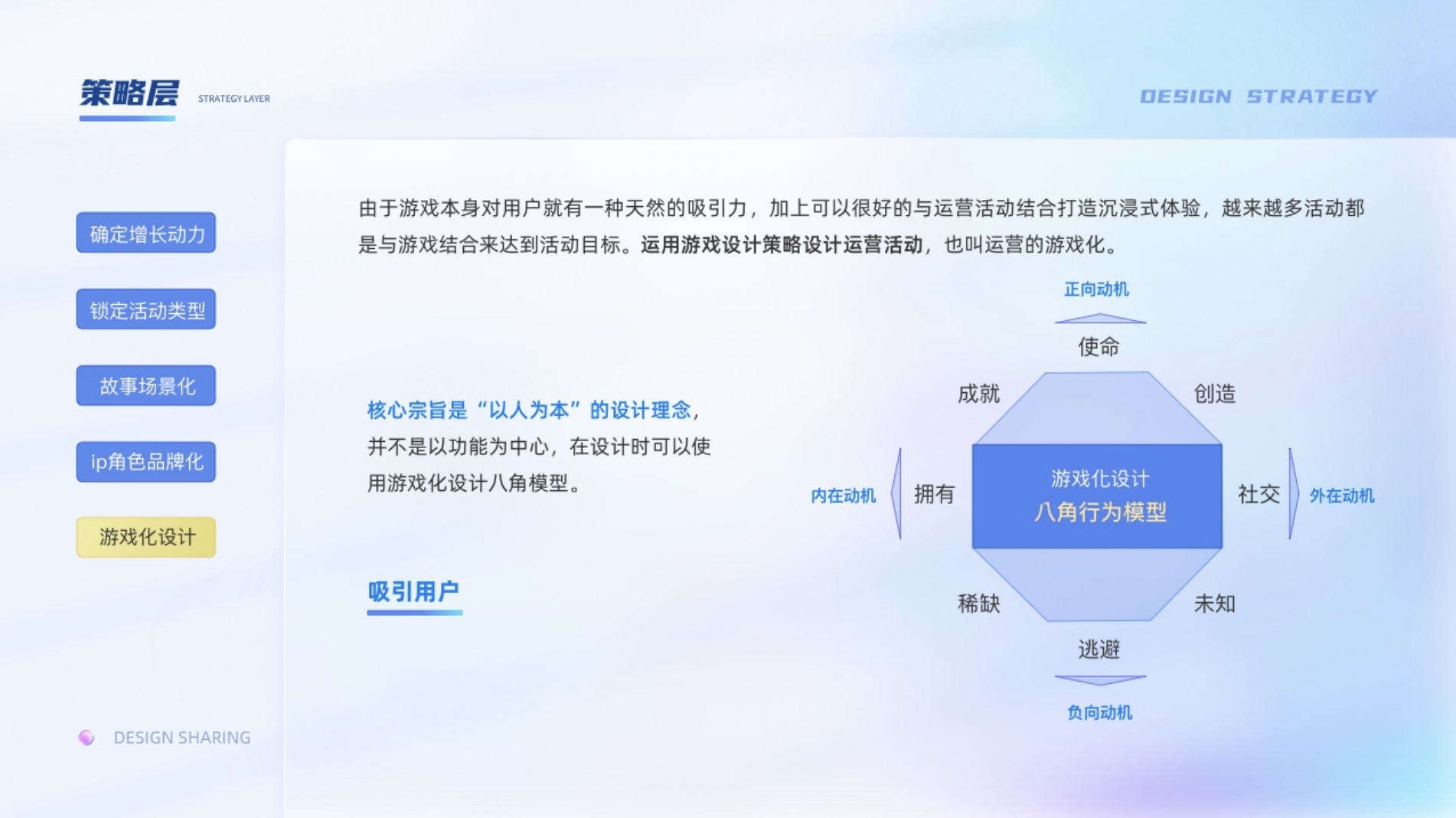 策略層:1、確定增長動(dòng)力;2、鎖定活動(dòng)類型;3、故事場景化;4、IP角色品牌化;5、游戲化設(shè)計(jì)