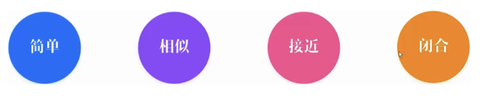 :眼睛易關注相似物體(形狀、大小、顏色),無論位置是否相鄰,都會將其聯(lián)系起來。
