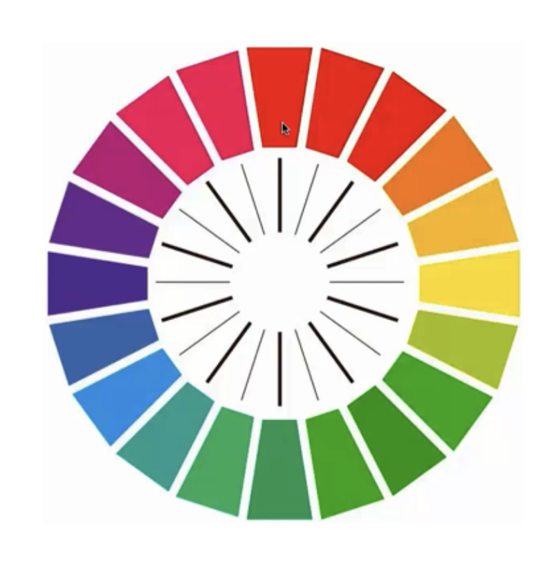 光譜順序:紅、橙紅、黃橙、黃、黃綠、綠、綠藍、藍、藍紫、紫、紫紅,十二色相環(huán)每色相距 30 度,二十四色相環(huán)每色相距 15 度。