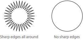 我們之所以對(duì)圓角情有獨(dú)鐘,另一個(gè)解釋是,圓角更符合我們?cè)诂F(xiàn)實(shí)世界中使用日常物品的方式 [3]。圓角隨處可見(jiàn)。作為孩子,我們很快就知道尖角容易傷人,圓角更安全。這就是為什么當(dāng)孩子玩球時(shí),大多數(shù)父母并不感到驚慌。