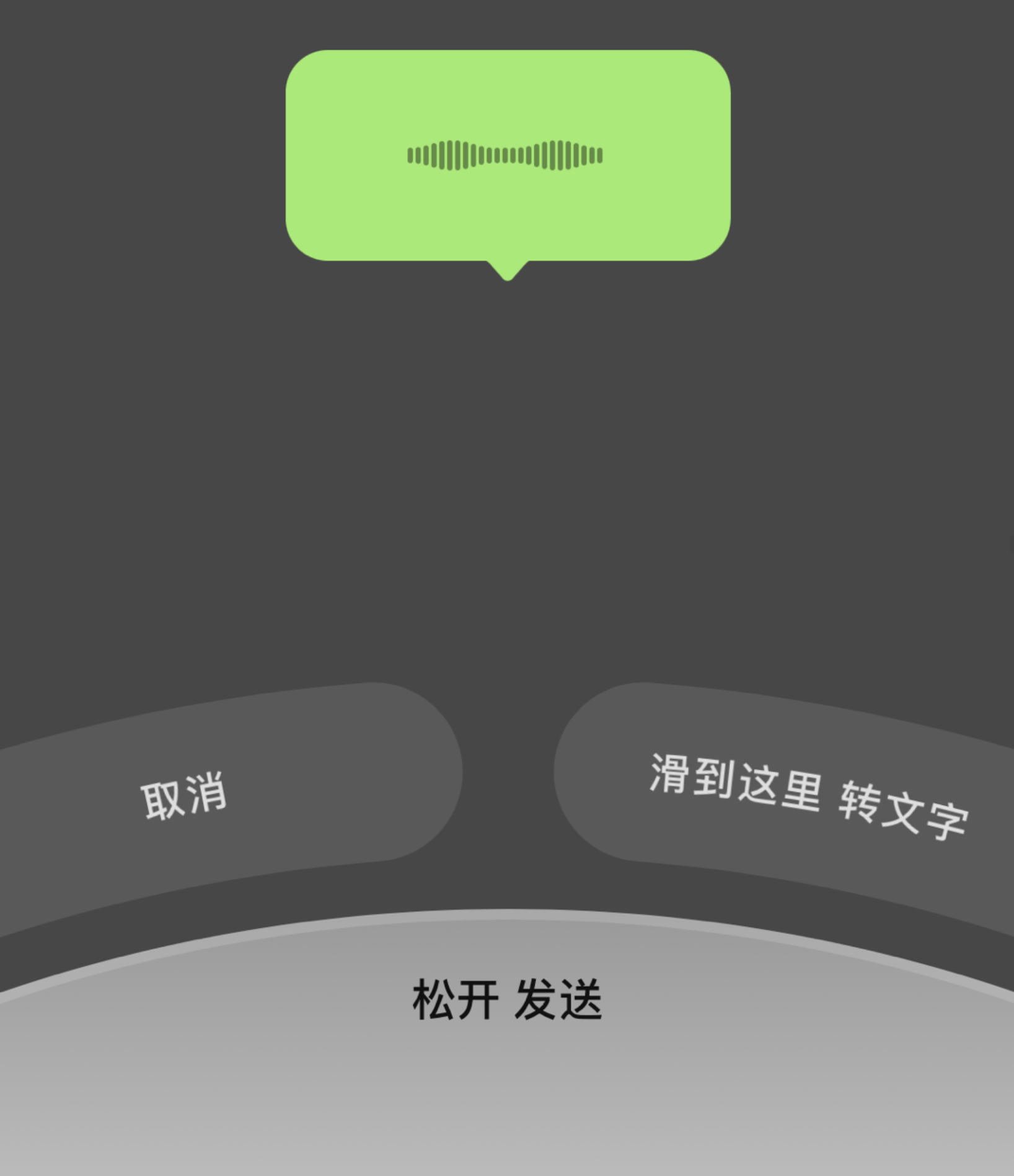 微信優(yōu)化了語音發(fā)送流程的視覺表現(xiàn),操作指引更清晰人性化,如明確 “滑到這里轉文字”“松開發(fā)送”“松手取消” 等,能滿足各年齡段用戶的操作認知。