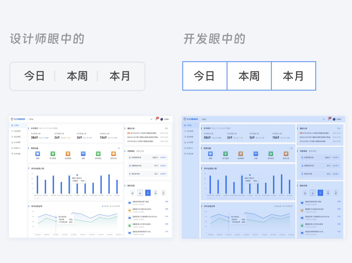 - 明確元素結(jié)構(gòu)和尺寸:清晰劃分元素各組成部分,便于還原設(shè)計稿中的元素結(jié)構(gòu)和尺寸。