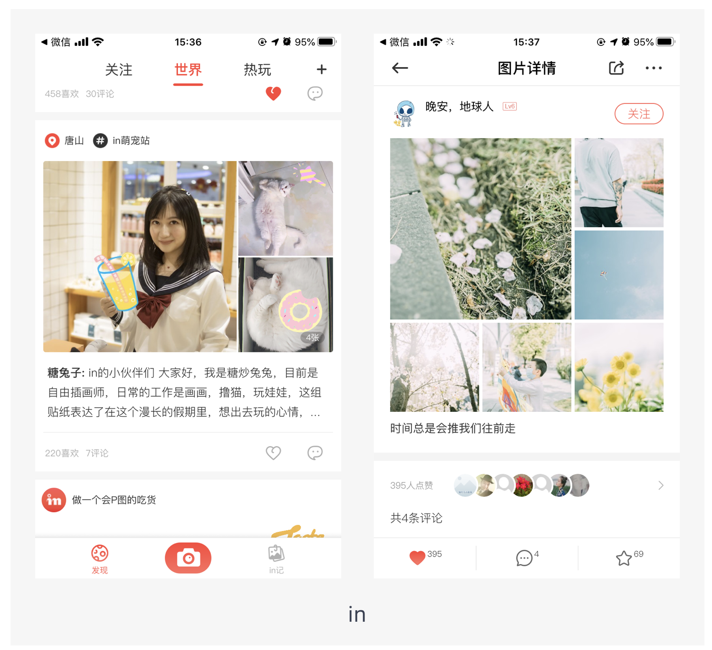 - 隨圖片而變化:當(dāng)用戶上傳不同比例的圖片時(shí),圖片展示寬度為屏幕寬度,展示高度根據(jù)確定的寬度等比例縮放。這種適配方式能將圖片信息表達(dá)完善,但圖片占用空間大,適合圖片質(zhì)量高、用戶以瀏覽圖片為主的產(chǎn)品,如圖蟲。不過(guò)需要注意的是,采用該方式需要設(shè)置最大最小閾值,當(dāng)圖片的高度超過(guò)一定數(shù)值,高度就不再增加,當(dāng)圖片的高度小于一定數(shù)值,高度不再減小。