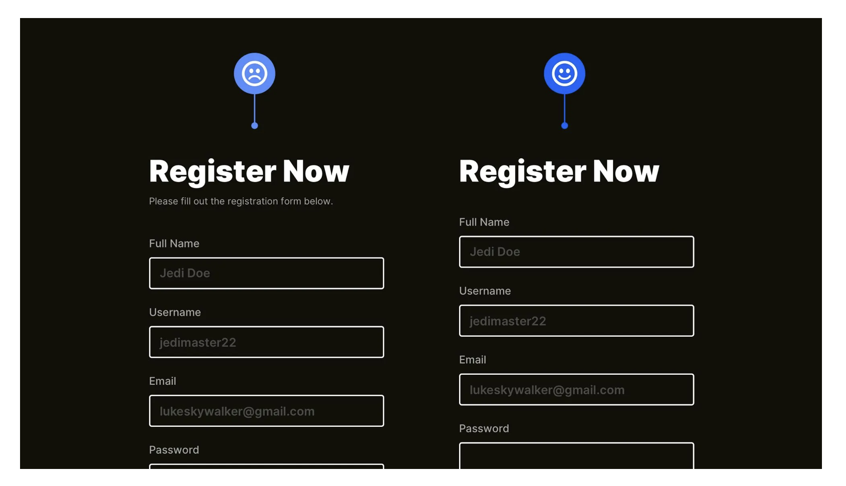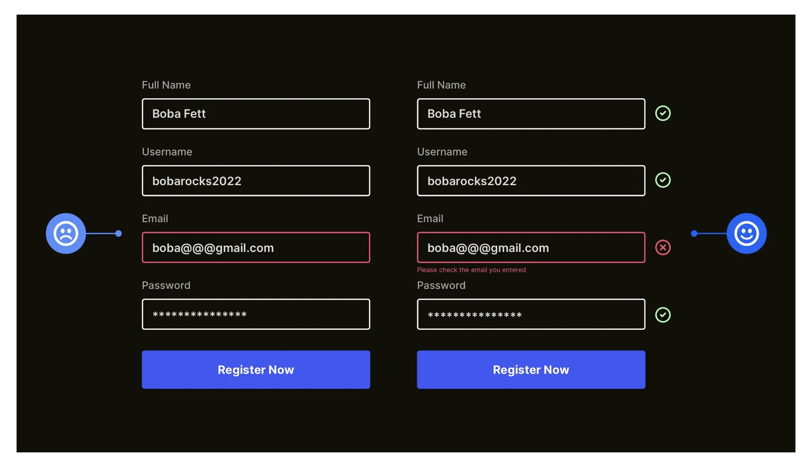 很多產(chǎn)品用 “紅色邊框” 提示表單錯(cuò)誤,但這種設(shè)計(jì)對色盲用戶無效 —— 他們無法分辨 “紅色” 與其他顏色,會(huì)完全忽略錯(cuò)誤提示,導(dǎo)致反復(fù)提交失敗。
