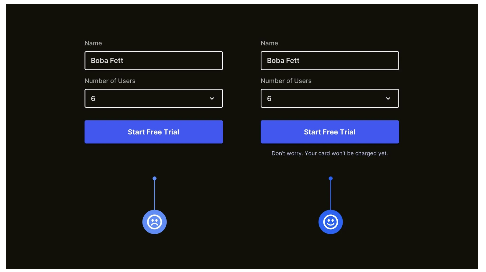 用戶對 “未知操作” 會(huì)有天然顧慮:點(diǎn)擊 “免費(fèi)試用” 后,會(huì)不會(huì)自動(dòng)扣費(fèi)?填寫手機(jī)號(hào)后,會(huì)不會(huì)收到垃圾短信?這些顧慮會(huì)讓他們猶豫是否點(diǎn)擊 CTA(行動(dòng)召喚)按鈕。