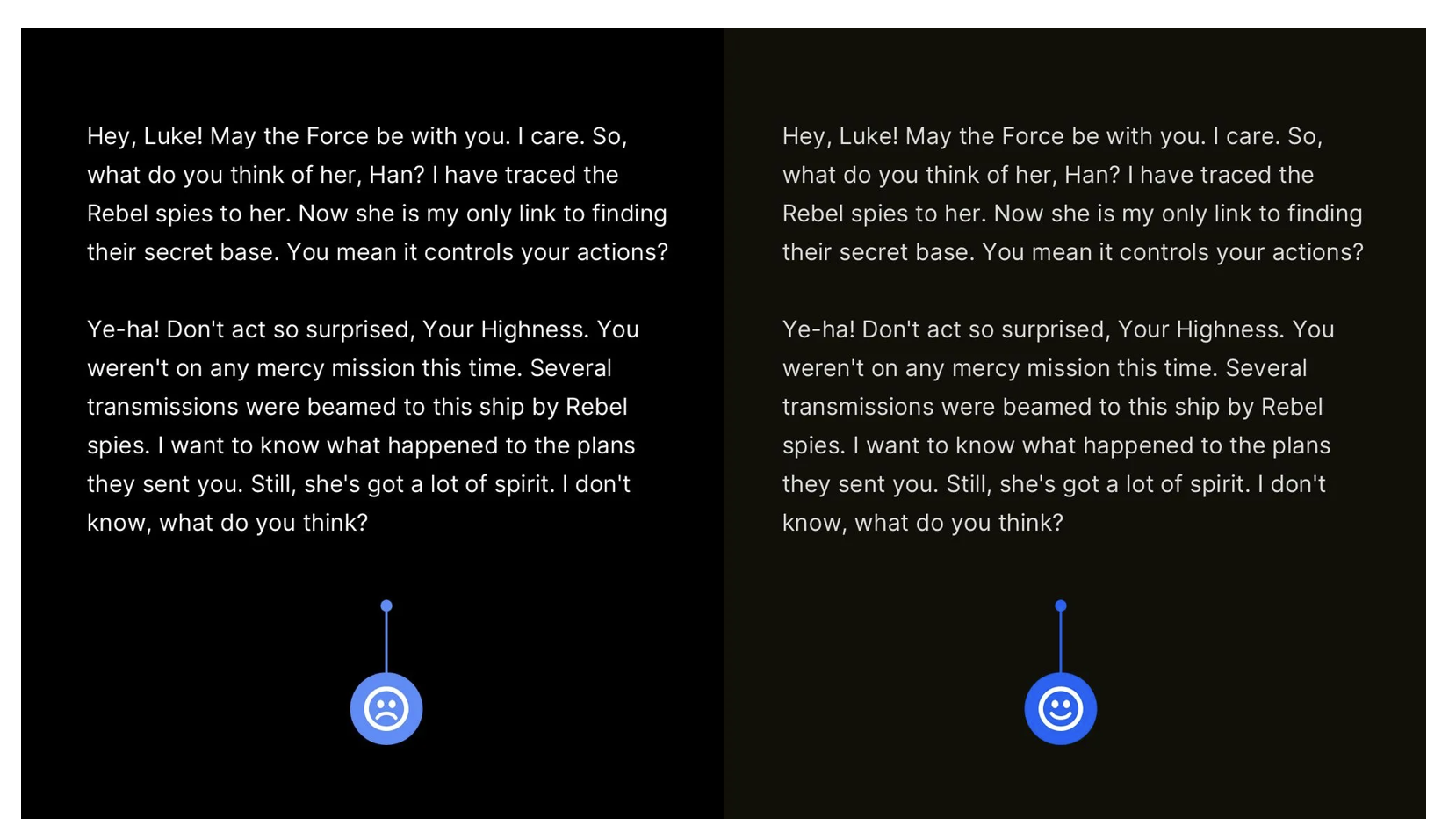 深色主題(如夜間模式)是很多產(chǎn)品的標(biāo)配,但純黑背景(#000000)搭配純白文字(#FFFFFF),會(huì)讓散光用戶產(chǎn)生 “文字光暈”—— 文字邊緣出現(xiàn)模糊的 “閃爍效果”,長時(shí)間閱讀會(huì)眼睛疲勞,進(jìn)而放棄使用。