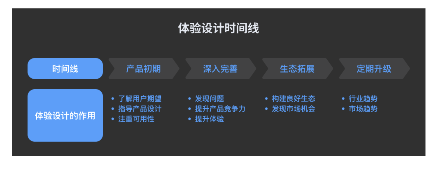 很多人問 “什么時候開始做體驗設(shè)計?” 答案是:從產(chǎn)品誕生到迭代的每一個階段,都需要體驗設(shè)計的介入。
