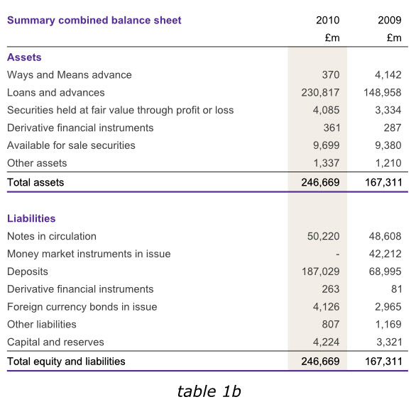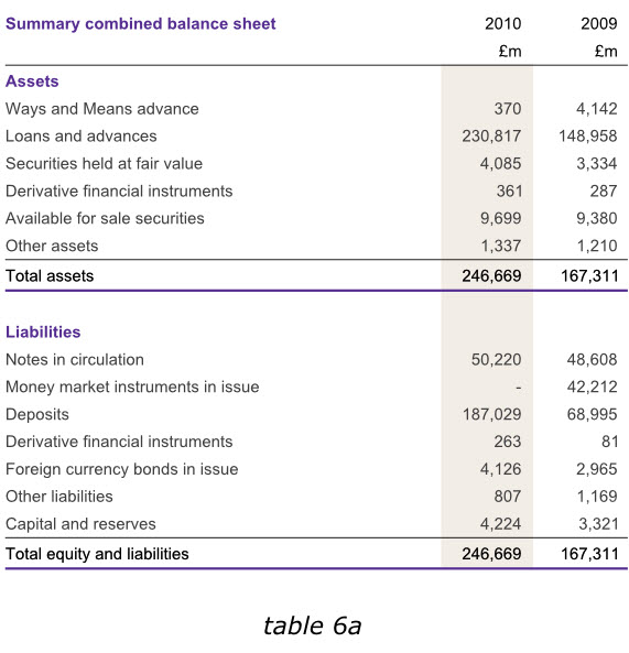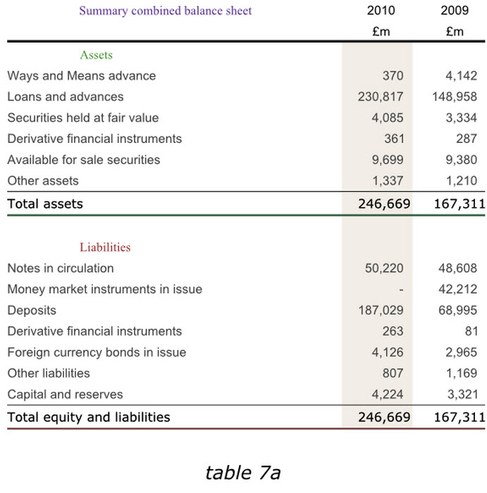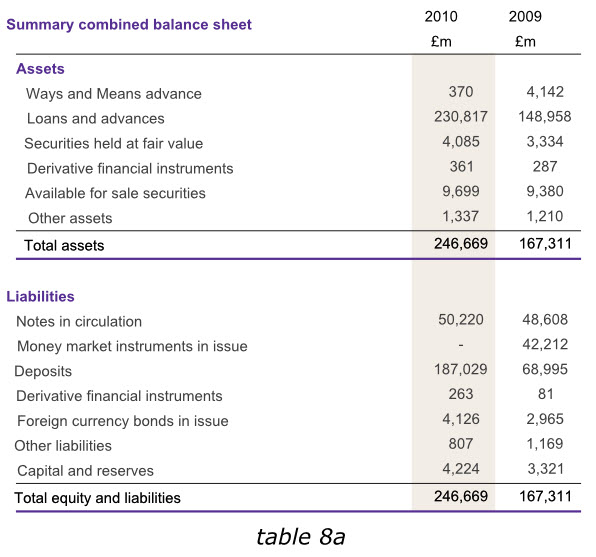 鑒于此,我們需要采用其他年報慣用的展示方式,以符合讀者的閱讀習(xí)慣,保證數(shù)據(jù)展示的清晰準(zhǔn)確。請注意,下表中更清晰的那副,是基本上完全根據(jù)英格蘭銀行2010年年報格式制作,是清晰展示數(shù)據(jù)表格的優(yōu)秀樣本。