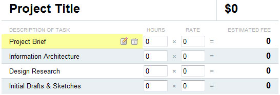 如果有多重操作,可以采取鼠標懸停操作方式,該方式是由行內(nèi)操作引申而來。鼠標懸停和鼠標離開分別顯示和隱藏操作,通過這種方式可以節(jié)省界面空間。Project Estimator by Astuteo 對每一行都有編輯和刪除操作,鼠標懸停到某一行的時候則顯示操作按鈕圖標,離開則不顯示。