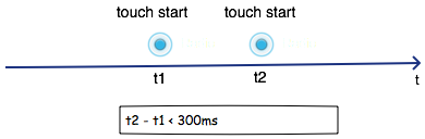 雙擊事件本質(zhì)是兩次快速的單擊。也即是說,兩次點(diǎn)擊的間隔時(shí)間很短。通過一定的測(cè)試量化后,我們把兩次單擊的時(shí)間間隔設(shè)為300毫秒。