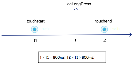 長按應(yīng)該是最容易分解的手勢(shì)。我們可以這樣分解:在 touchstart 發(fā)生后的很長一段時(shí)間內(nèi),如果沒有發(fā)生 touchmove 或者 touchend 事件,那么就觸發(fā)長按手勢(shì)。