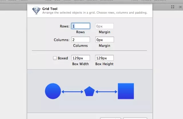 Sketch 有一個(gè)稱為 “Create grid” 的功能。點(diǎn)擊工具欄中的四個(gè)方格(如圖右上方的圖像),就會(huì)跳出一個(gè)菜單,在這里你可以設(shè)定你所需的行數(shù)和列數(shù)。