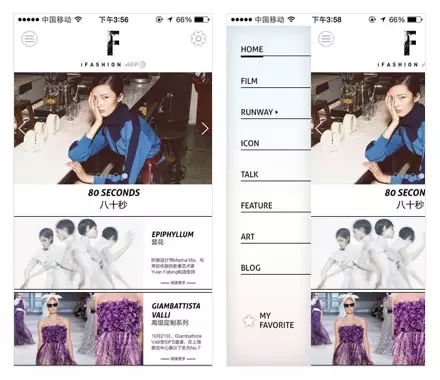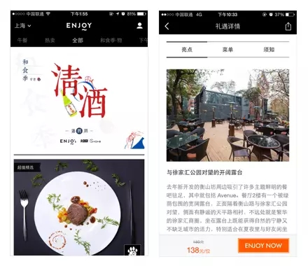 當(dāng)然,如果不是內(nèi)容為主的App,沒有太多的排版需求的話,不妨可以像iFashion,或者又是飯本出品的精選限量美食App—ENJOY—這樣,通過直接了當(dāng)?shù)暮诰€分割,也是不失干脆利落。