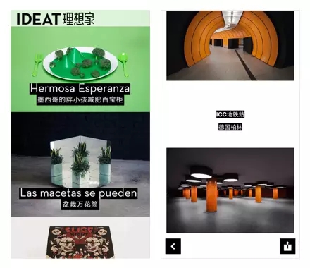 IDEAT理想家App,繼承了法國IDEAT雜志的理念,以展示設(shè)計、藝術(shù)和風(fēng)尚的「當(dāng)代生活」內(nèi)容為主。App界面上除了內(nèi)容圖片之外,幾乎沒有黑白以外的其他色彩元素。通過襯以黑底的高亮白字,既是內(nèi)容又是裝飾,貫穿在整個App設(shè)計元素當(dāng)中;調(diào)節(jié)這些文字與其他內(nèi)容之間的間距,又在排版上起到作為點,作為線,甚至作為面的不同功用。