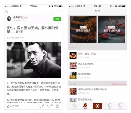 作為一個「交流故事,溝通想法」的的寫作平臺App,簡書為了優(yōu)化閱讀體驗,選擇了思源黑體作為內(nèi)嵌字體,使用戶發(fā)布的不管是簡體中文、繁體中文、還是日文韓文,都能有比較理想的表現(xiàn)。食色的產(chǎn)品概念是和「生活家」們一起,發(fā)現(xiàn)與分享城市中的美食,所以選擇了細(xì)膩精致的方正蘭亭纖黑作為主要的界面字體。用戶第一次使用,就能感受它與其他產(chǎn)品在氣質(zhì)上的不同。