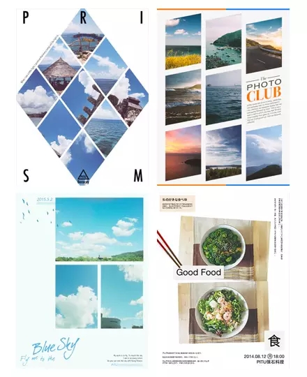 此外,對于用戶自己生產(chǎn)內(nèi)容的App來說,把用戶的圖片和文字內(nèi)容合成在一個排版好的模版里面,再分享出去,也是一個能展現(xiàn)設(shè)計水平的方式。天天P圖的海報拼圖,就是一個功能化后的海報式分享。用戶將自己拍攝的照片,添加到設(shè)計好的海報模版中,可以修改相應(yīng)的主題和文案,程序還能自動識別照片時間、拍攝地點,只要簡單的操作就能組合出一張屬于自己的海報。通過海報拼圖分享出去的照片,是不僅是通過設(shè)計師設(shè)計的模版來提升用戶照片逼格的成果,也是用戶氣質(zhì)與產(chǎn)品氣質(zhì)交織后的成果。