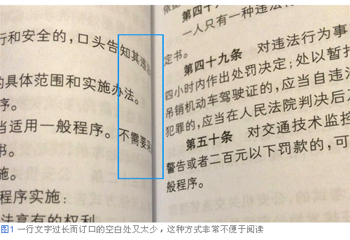在設計工作中,如果有100個人就會有100種設計理論,我認為并不能總結出一條絕對正確的理論。但是,如果完全沒有什么設計理論的話,貌似會使設計顯得很奇怪。比如,經(jīng)常會看到這種書籍(圖1),一行文字過長而訂口的空白又處理得不太合適。只要看到這樣的設計,馬上就會想到“這里好像沒有規(guī)則啊”,還會讓人產(chǎn)生“這本書的設計師好像不讀書啊”這樣的感覺。在閱讀過程中哪怕只有一些地方令人難以理解,也會讓人精神不集中,不能徹底關注文章本身。如果是一個讀書的人,他自己看看這樣的設計,自己也會感到這種方式不便于閱讀啊。所以我認為電子書的閱讀感受也是這樣,要做出理想的版面,作為設計者需要站在讀者的角度考慮,應該尋找對于自己來說便于閱讀的排版。因此,也借此機會來整理出網(wǎng)易云閱讀產(chǎn)品中,書籍正文文字排版的相關規(guī)則。