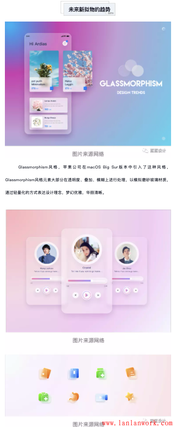 從輕擬物風(fēng)格到Glassmorphism風(fēng)格,擬物化設(shè)計(jì)的演變進(jìn)程已然開(kāi)啟,未來(lái),無(wú)論是3D設(shè)計(jì)的加入還是扁平風(fēng)格的延續(xù),“質(zhì)感”都將成為設(shè)計(jì)過(guò)程中被著重強(qiáng)調(diào)的風(fēng)格。