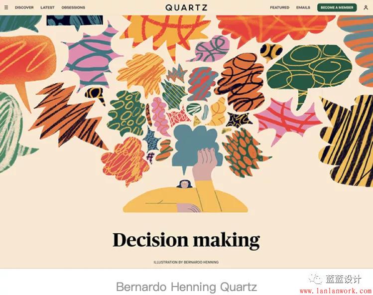 這種風(fēng)格的插畫(huà)非常像凌亂的涂鴉,乍看未完成,但所有的細(xì)節(jié)都是經(jīng)過(guò)深思熟慮的。重疊的形狀和強(qiáng)烈的色彩讓這些插畫(huà)與眾不同,同時(shí)能有效激發(fā)靈感。