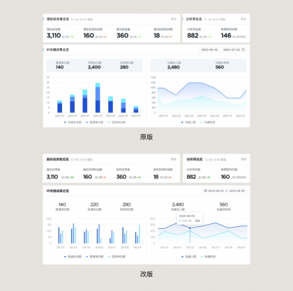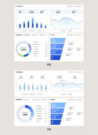 但重要不代表需要過度傾注和堆疊視覺元素,過度的設(shè)計(jì)會讓界面看起來有 “飛機(jī)” 敢,不僅不真實(shí)的印象產(chǎn)生了,還會顯得業(yè)余不夠自信。同時任何項(xiàng)目中表盤頁過度設(shè)計(jì)都會對整個項(xiàng)目造成負(fù)擔(dān),后續(xù)的頁面要怎么設(shè)計(jì)才能不和它產(chǎn)生隔閡,保持一致性。