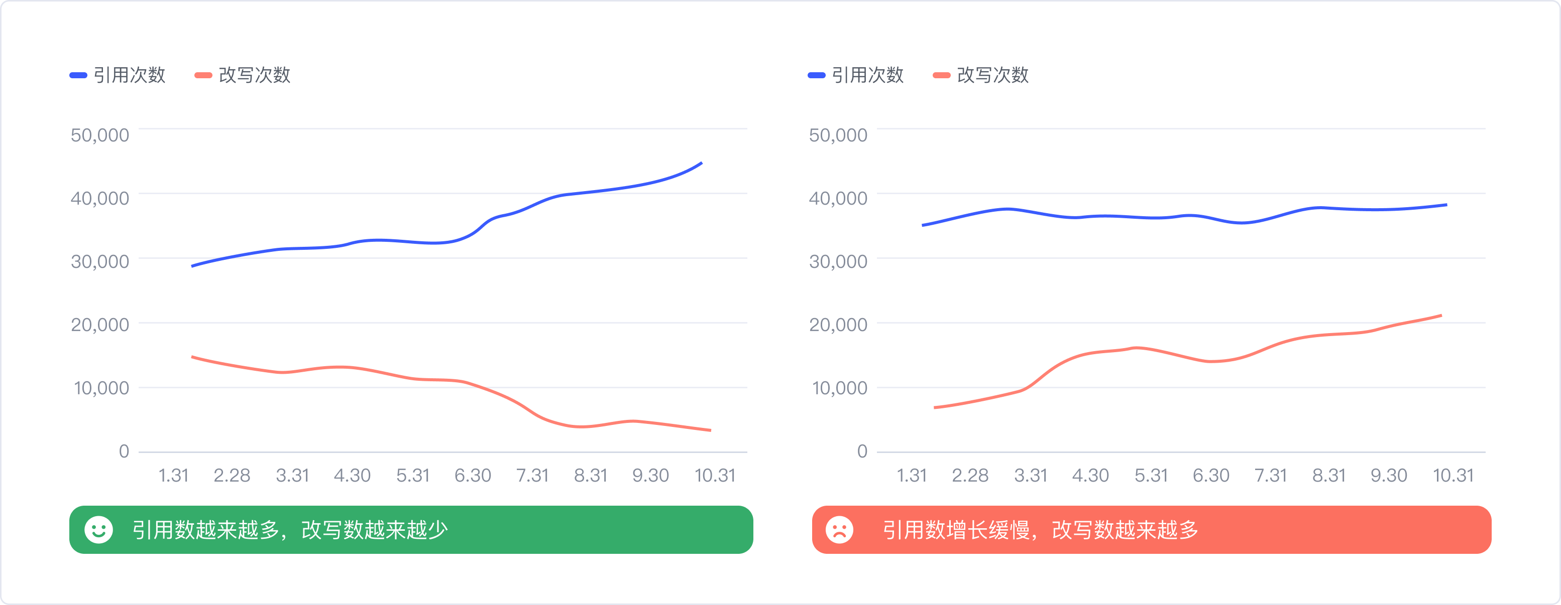 解:把所有組件的引用次數(shù)加和,得到總體數(shù)值,并結(jié)合時(shí)間維度,觀察組件庫整體改寫數(shù)與引用數(shù)各自的變化趨勢。用線形圖來描述的話,隨著時(shí)間推移,引用越多,改寫越少,兩條線呈開口狀,那就表示組件庫處于越來越健康的狀態(tài)。反之則需要警惕了。同時(shí)我們搭建了一套評(píng)分體系,基于引用/改寫數(shù)值,通過歸一化和加權(quán)等一系列計(jì)算,by月/季度給組件庫易用性打分,也能精準(zhǔn)的知道組件庫易用性的表現(xiàn),如果分值是下降的,就要具體去定位哪些組件出了問題,再根據(jù)上述的方法相應(yīng)地進(jìn)行升級(jí)。