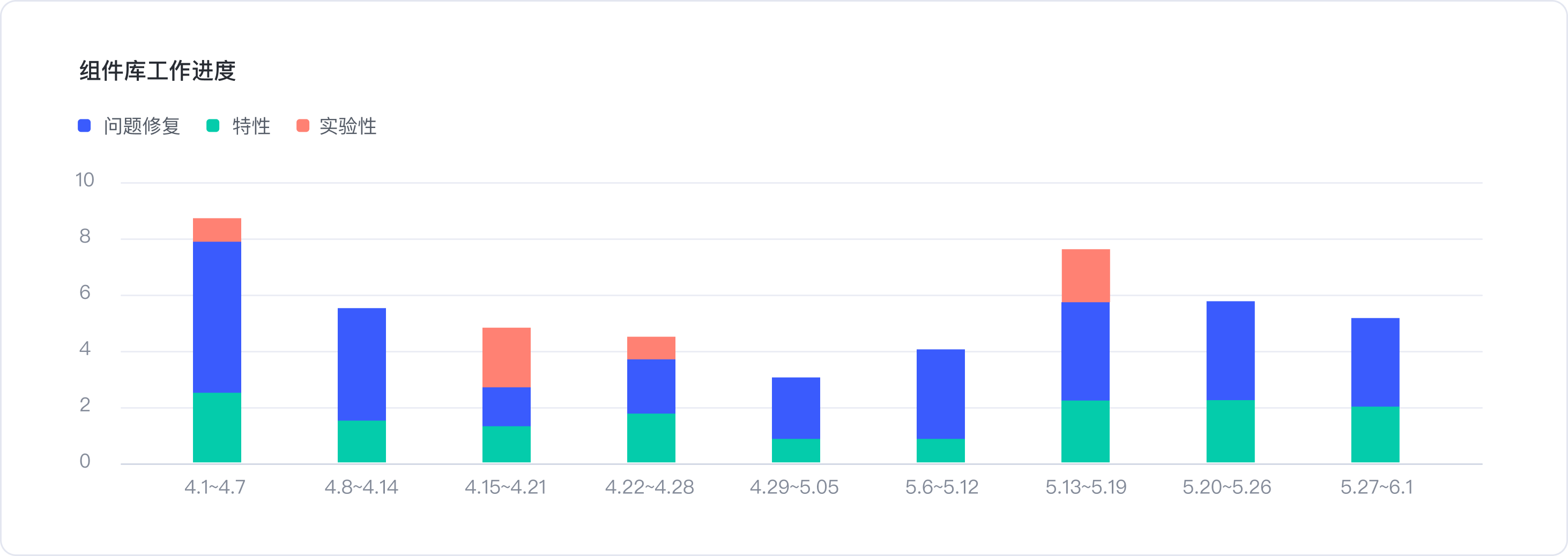 1.組件庫迭代進(jìn)度-迭代性質(zhì)可分為問題修復(fù)、特性和實(shí)驗(yàn)性功能增優(yōu)。