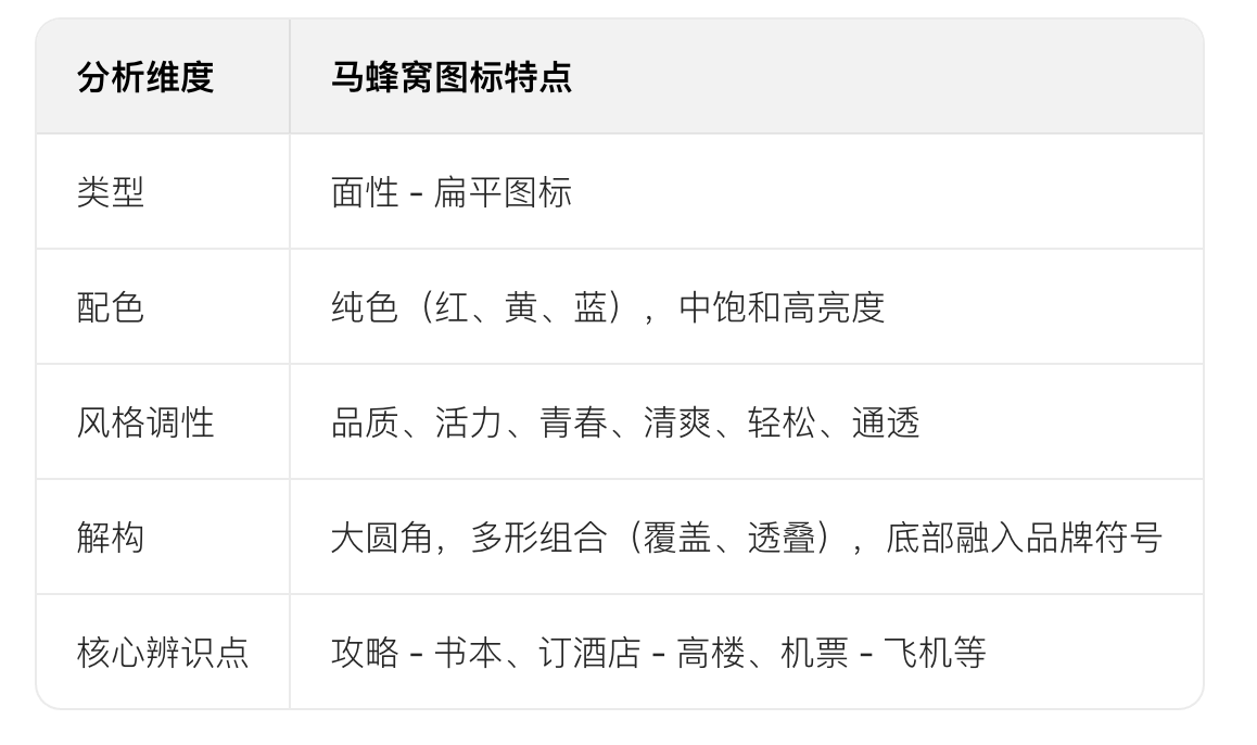 • 形状直接表意Q如酒店图标用高D廓)Q避免抽象模p(如马蜂窝 “游记” 图标需优化Q?/li>