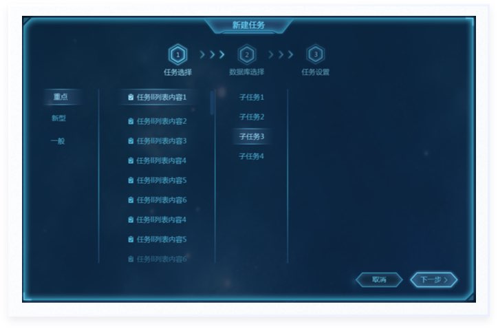 視覺(jué)方面使用大屏常用的深色背景,主色采用藍(lán)色配色,通過(guò)整體排版,元素的設(shè)計(jì),來(lái)凸顯科技感。頁(yè)面布局方面,采用模塊化布局,便于區(qū)分信息類(lèi)別;扁平化的視覺(jué)元素+框式設(shè)計(jì),最大程度地減少頁(yè)面元素的干擾,提升頁(yè)面內(nèi)容承載量。