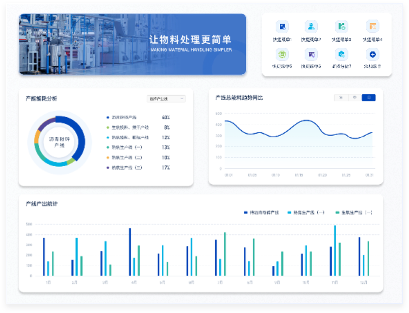 菜單導(dǎo)航區(qū)疊加工廠作業(yè)場景圖,突出軟件的主題同時(shí)豐富頁面。