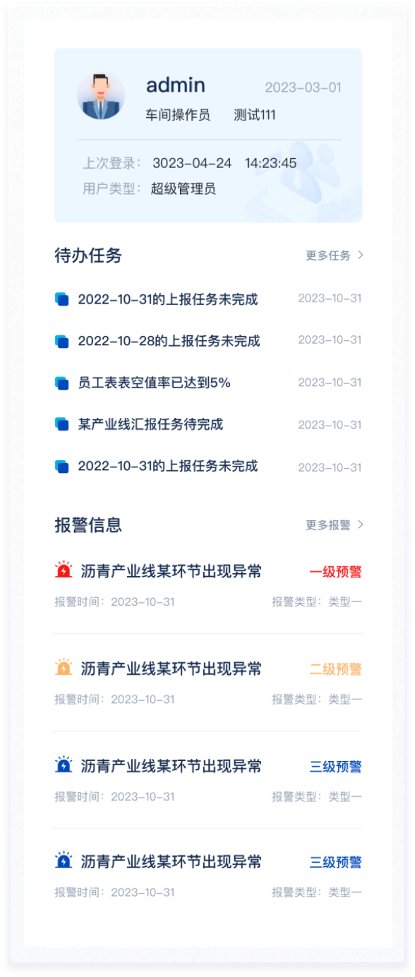 右側(cè)個(gè)人信息、待辦事項(xiàng)和報(bào)警信息區(qū)